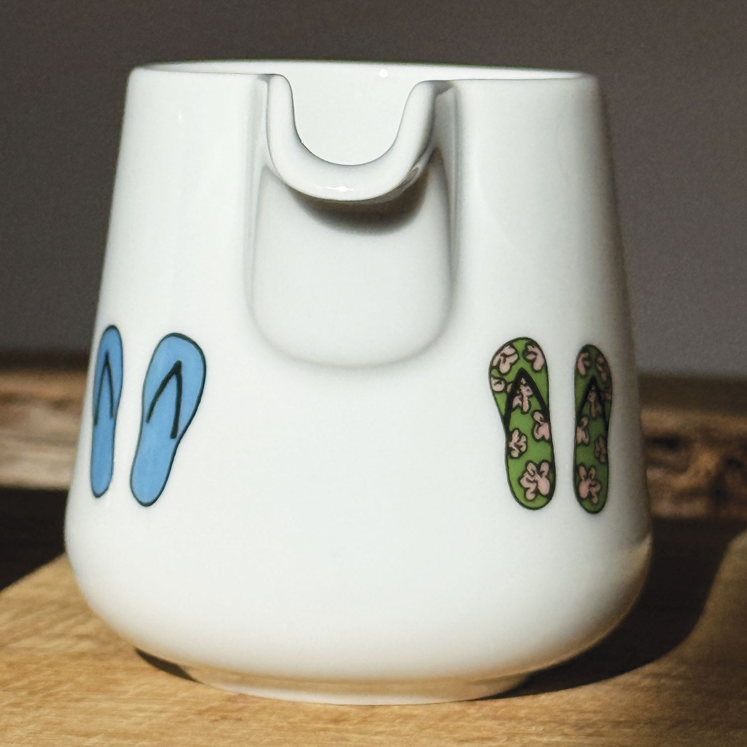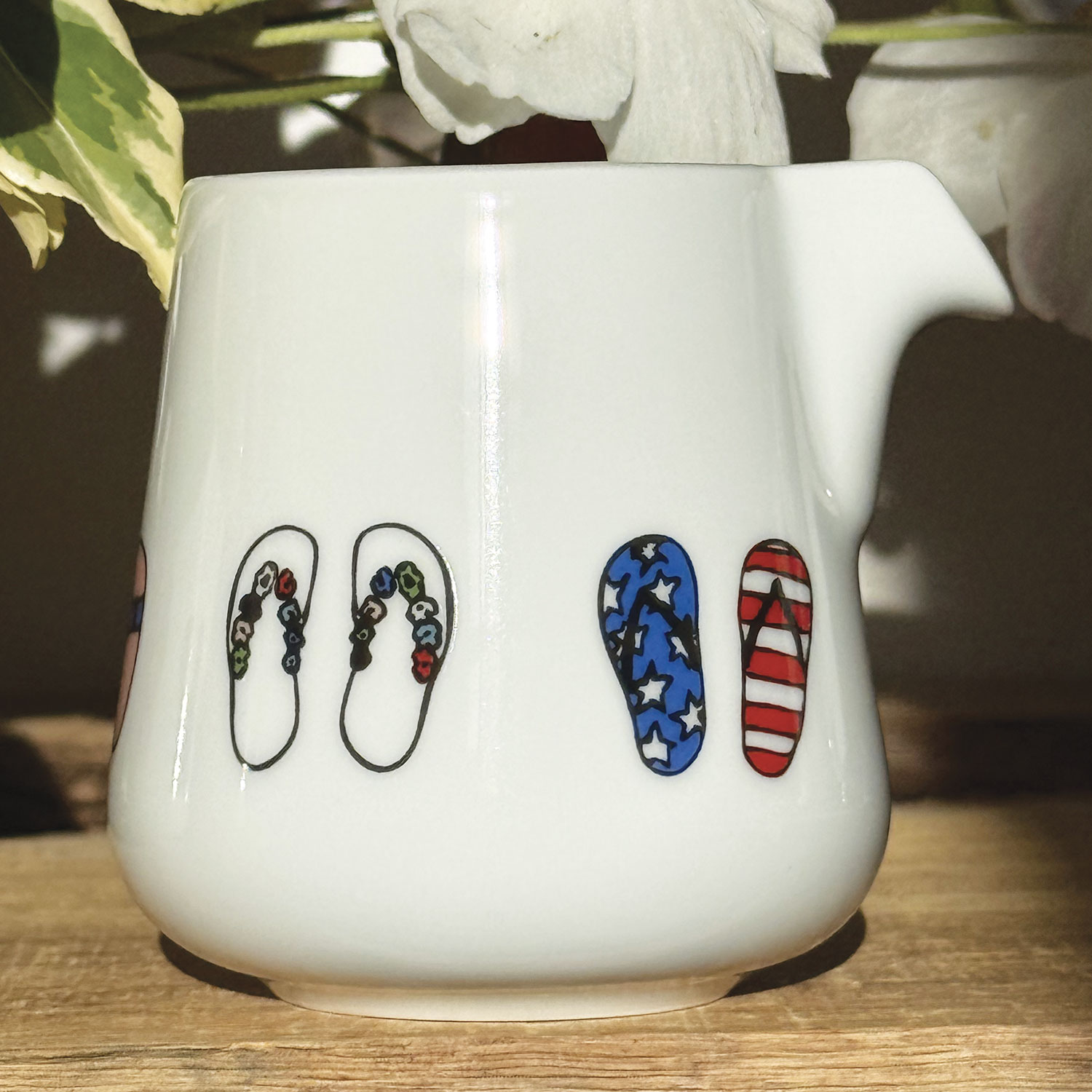 Un petit nouveau dans l’atelier, avec ce petit pot à lait ou crémier en porcelaine avec les dessins des TONGS !