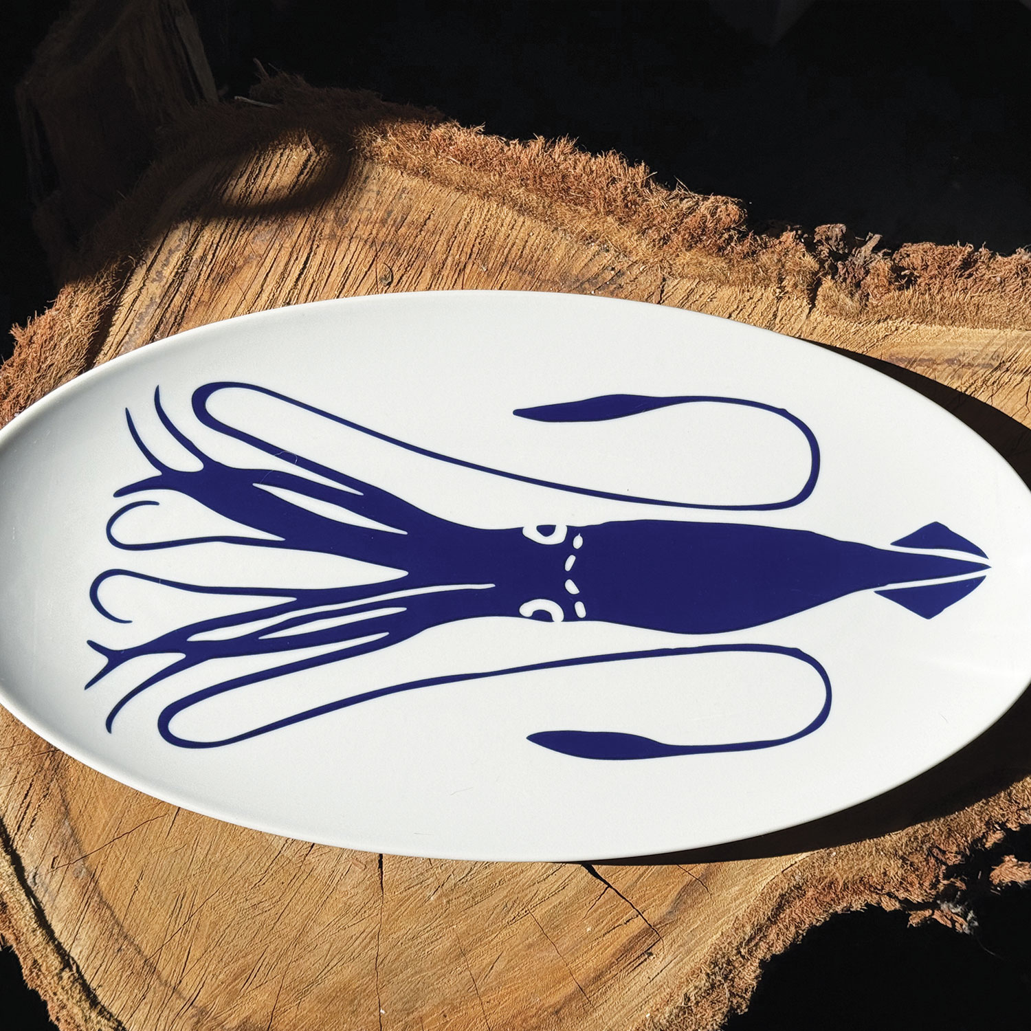 Le plat ovale Chipiron est à l’origine de la collection ANTXOAK qui rend honneur aux poissons basques… oui, il fallait oser ! Ce magnifique chipiron bleu est généreux et gourmand, comme celui qui vit au larges de côtes basques.