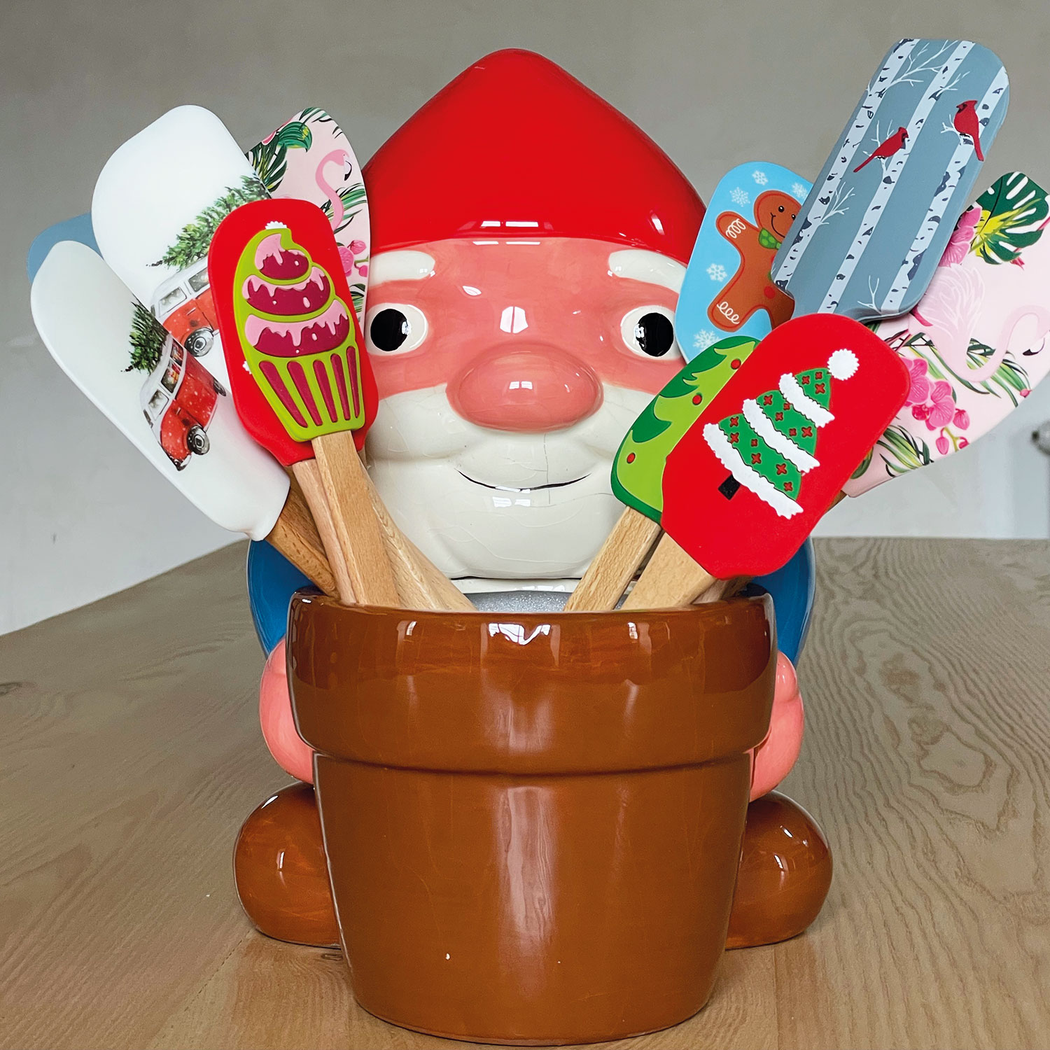 Un format médian pour cette spatule très pratique : la partie en silicone représente un sapin vert sur fond rouge, pour donner de vraies allures de fêtes de Noël